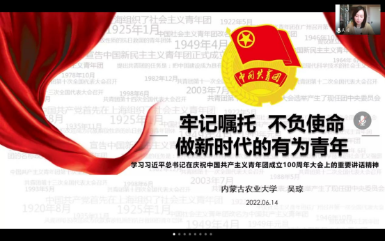 6月14日晚,bevictor伟德第二十九期党员发展对象培训班邀请吴琼老师讲授第七讲。吴琼老师任草原与资源环境公司团委副书记,曾获内蒙古自治区五一劳动奖章、内蒙古自治区青年五四奖章,并以总分第一名的成绩连获内蒙古自治区第七届、第八届辅导员素质能力大赛一等奖,是内蒙古青年讲师团成员。