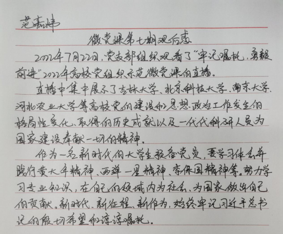 党的十八大以来,以习近平同志为核心的党中央高度重视高等教育,亲切关怀高校师生。在习近平总书记亲自领导,亲自部署,亲自推动下,党对高校的全面领导切实加强,高校坚守为党育人,为国育才。陈常贺同志在学习感悟中提到,通过本次学习,使我认识到作为一名员工党员,面对新的征程、新的使命,必须要学习弘扬黄大年同志、李保国同志高尚精神,弘扬留学报国光荣传统。始终牢记总书记的殷切希望和谆谆嘱托,脚踏实地,锐意进取,以实际行动迎接党的二十大顺利召开。