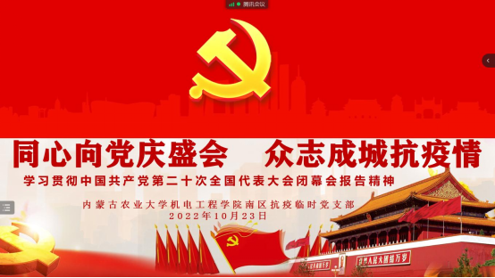 2022年10月23日下午3时,bevictor伟德南区25、26号员工宿舍楼抗击新冠疫情临时党支部全体教师党员通过腾讯会议开展党的二十大报告精神线上集中学习。公司党委书记、南区25、26号楼疫情防控负责人云荣义同志,以及13名参与南区25、26号楼疫情防控工作的党员教师参加学习。