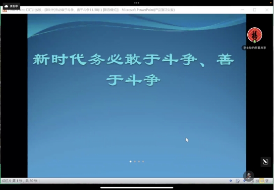 李士珍老师以“新时代务必敢于斗争、善于斗争”为主题开讲。回顾历史,在中国共产党的领导下,人民军队以小米加步枪在三年多时间内打败了国名党800万大军,此辉煌历史正是由于共产党人具有敢于斗争、善于斗争的精神。