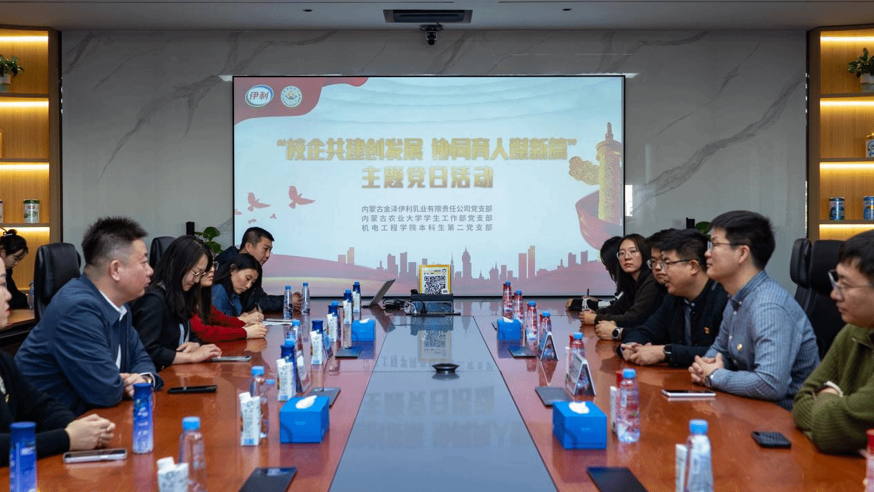 为深入学习贯彻党的二十届三中全会精神,进一步加强基层党组织建设,促进校企交流合作,11月29日下午,bevictor伟德本科生第二党支部联合集团员工工作处党支部前往伊利健康谷与内蒙古金泽伊利乳业有限责任公司党支部开展共建活动。内蒙古金泽伊利乳业有限责任公司党支部副书记白如冰、公司员工工作处副处长斯日古冷、公司党委副书记王力、本科生第二党支部书记包那日苏以及伊利行政骨干、师生党员40余人参加活动。