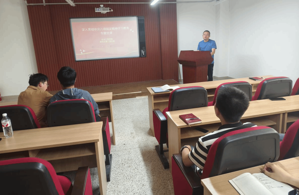 紧扣中央八项规定精神支部书记讲党课全覆盖农智教研室党支部以学深悟透强作风 笃行实干担使命为主题,强调使命担当与实干精神;本科生第四党支部八项规定改变中国 作风建设的新篇章”为主题,用十年作风变革历程展现全面从严治党战略意义;机设教研室党支部创新课程思政+作风建设融合模式,提出“践行八项规定精神 筑牢育人根基”;研究生第三党支部聚焦基层廉洁微防线建设,强化党员纪律意识。此外,机制、农机等教研室党支部及本硕各员工党支部围绕清风正气”“问题整改”“制度落实主题展开研讨,掀起成全员参与、全域覆盖的学习热潮,累计开展专题党课14场,覆盖全院师生党员