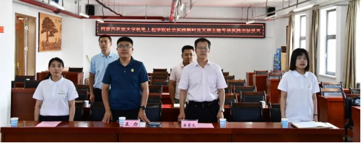 公司党委书记云荣义老师为社会实践临时党支部授旗;党委副书记王力老师为直属队授旗。