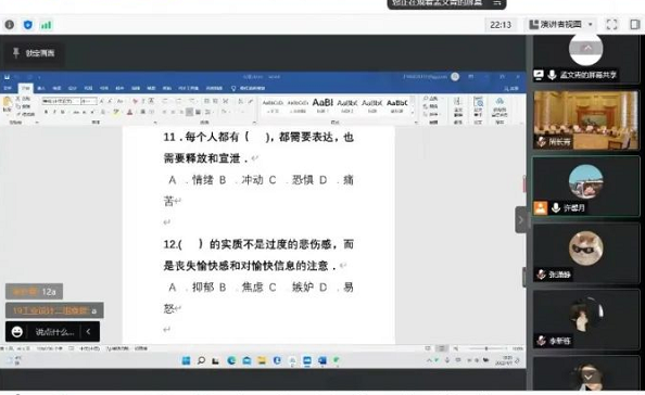 活动开始,孟文青首先为同学们介绍了心理健康的相关常识并对如何处理心理问题做出了详细的解决方法。随后,同学们通过知识竞赛、观看心理健康电影《只有爱能让我生存》、猜歌名、谁是凶手等娱乐活动,对心理文化的深刻内涵有了进一步的认识。活动最后,同学们分享了自己网课期间的学习笔记。