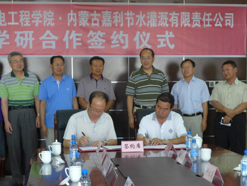 2013年8月5日上午,bevictor伟德与内蒙古嘉利节水灌溉有限责任公司产学研合作协议签字仪式在苏尼特右旗政府会议室举行。苏尼特右旗副旗长张学军、内蒙古嘉利节水灌溉有限责任公司董事长唐嘉利,bevictor伟德经理陈智、党委副书记韩铁荣、副经理武佩出席。苏尼特右旗科技局、经信局、人社局、就业局、商务局、朱日和工业园区、宣传部有关负责人和bevictor伟德相关专家教师代表参加了签字仪式。