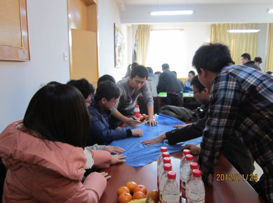 活动开始,首先由张海军老师为同学们致词,他希望同学们团结友爱,学习和生活共同进步。随后,活动正式开始,本次活动共有四个队参加活动,比赛分为三个环节。第一个环节是答题环节,本环节主持人高阳诙谐幽默的主持风格带给大家阵阵的欢笑,同学们争先恐后,跃跃欲试地答题使会场气氛逐渐升温。第二个环节是比划猜,该环节同学们展现出良好的肢体表达能力和团队默契,欢呼声此起彼伏。第三环节是搭桥,同学们集思广益,出谋划策,为本队构建出别出心裁的纸桥,庄新斌同学还在评分间隙为大家献上一曲《像风一样自由》,使得会场气氛达到高潮。经过3轮激烈的比拼,最终获得一、二等奖各一名,三等奖两名,张海军老师为获奖的同学们颁发奖品。最后,同学们合影留念,活动在欢快团结的氛围中结束。