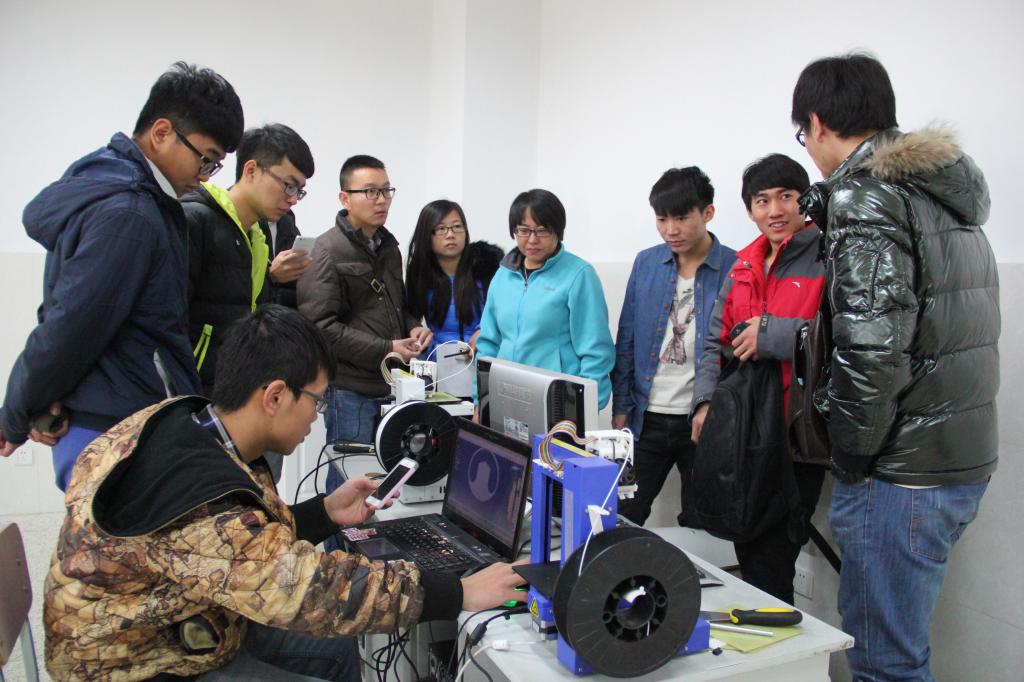 竞赛由机械制造教研室承办,以“无碳小车越障”和现场3D打印车标为竞赛主题。各参赛队分别设计一款三轮结构小车,根据能量转换原理驱动行走、转向,通过转向控制、调节小车适应有障碍物的赛道,参赛小车从结构设计、材料选用及加工制作均由参赛选手自己完成,部分部件通过3D打印技术一次成型,理论知识与实操有机结合,努力实现小车优势的最大化,锻炼了逻辑思维和动手实践能力。在3D打印赛区,选手根据设计要求现场构图在规定时间内完成打印任务,新技术的运用赢得了老师、同学们的阵阵掌声。