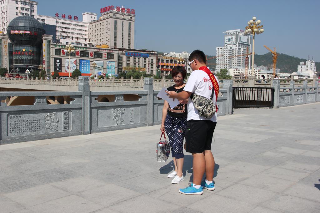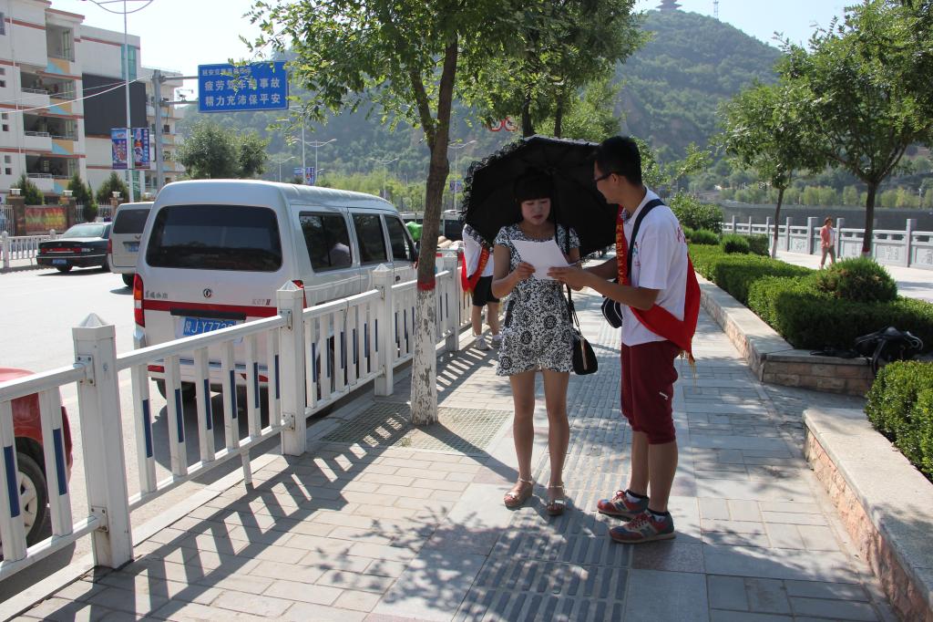 上午9:00,实践队员延河边仰望宝塔山,感受宝塔山的巍然挺立,宝塔山作为革命圣地的象征为革命战争年代、社会主义建设时期及今天的有志青年指引方向、思想上受到震撼、精神上接受洗礼;实践队员在宝塔山前、延河大桥边向游客和市民发放“延安精神的解读”调查问卷,探寻人民群众心中的延安和延安精神。