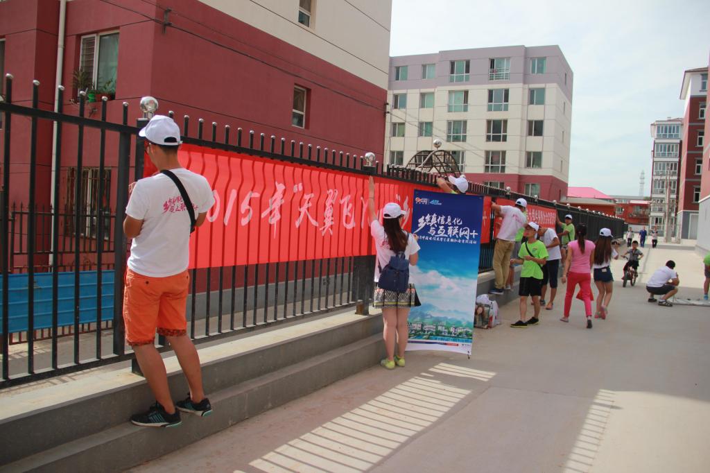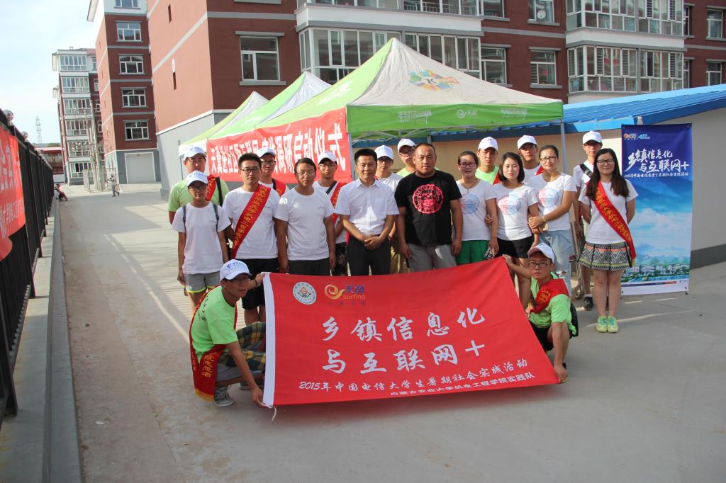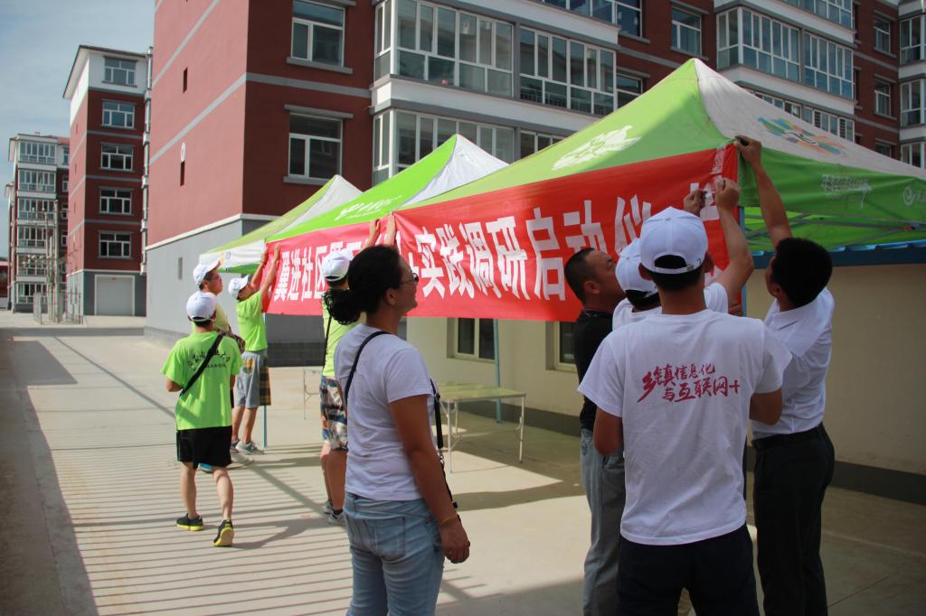下午3:00,实践队走进和林格尔县盛乐镇丰华小区,这是伟德国际1946与中国电信内蒙古和林格尔县分公司两家单位深化合作,推动老员工暑期社会实践,调研和林格尔县信息化程度的重要举措,活动围绕“将贴心的生活类服务带进基层方便社区居民、教会社区居民使用、运用互联网新媒体、把优质放心的电商产品介绍给社区居民”三个主题,开展天翼进社区 互联网+调研实践活动。启动仪式上,伟德国际1946公司党委书记那森巴雅尔同志、中国电信和林格尔县分公司信总、杨总、梁总以及bevictor伟德院办主任李海军教授亲临活动现场慰问实践队员并参加现场活动。