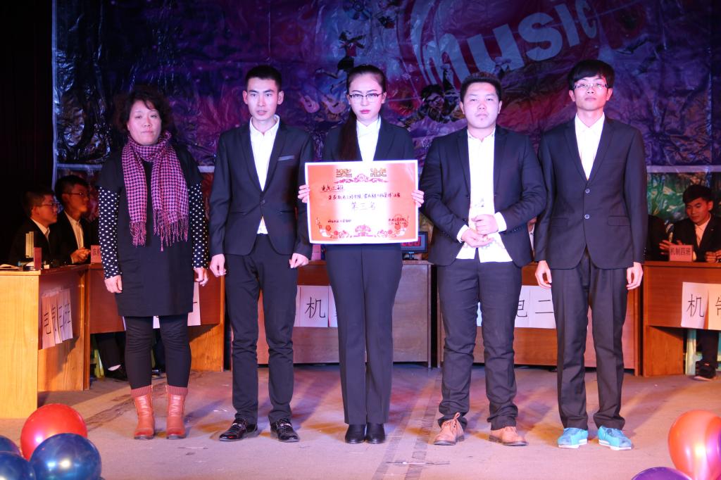 一曲精彩的二胡表演和开场舞蹈后比赛正式开始,大赛在原有必答题、是否题、挑战题、同场作答等传统答题环节上,创意性的增添了听歌词猜歌曲、心有灵犀、抢椅子的趣味环节,使参赛选手在紧张之余得以放松。大赛题型多样,内容丰富,涉及校规校训、文学知识、历史知识、生活常识等方面,选手们精彩作答,认真思考,充分发挥团队协作精神,展现出不凡的实力。经过两个小时的比拼,农电二班摘得比赛的桂冠,工业设计班和电气三班分获二三名。