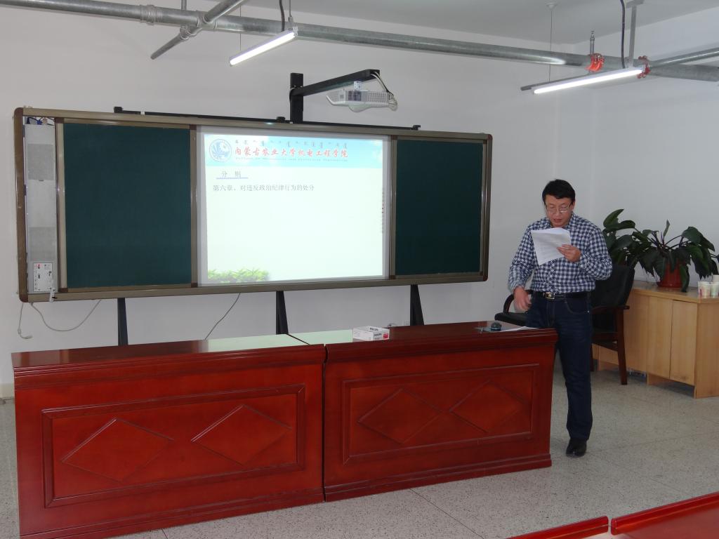 根据公司党委下发的“关于集中学习《中国共产党廉洁自律准则》和《中国共产党纪律处分条例》”通知要求,公司党委于2016年1月19日下午4:00于工科楼825会议室召开教工党员大会,bevictor伟德现有教职工党员57名,到会48名,请假9名,大会由许驭同志主持。首先通报了公司“关于决定给予后勤管理处左颉同志全校通报批评的通知”,带领全体党员同志逐章逐条、逐字逐句学习《中国共产党廉洁自律准则》和《中国共产党纪律处分条例》,并就请假缺席人员的9名同志的补课问题做了认真安排。