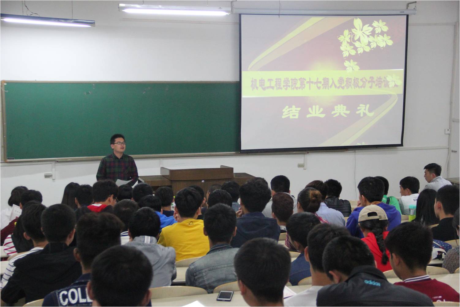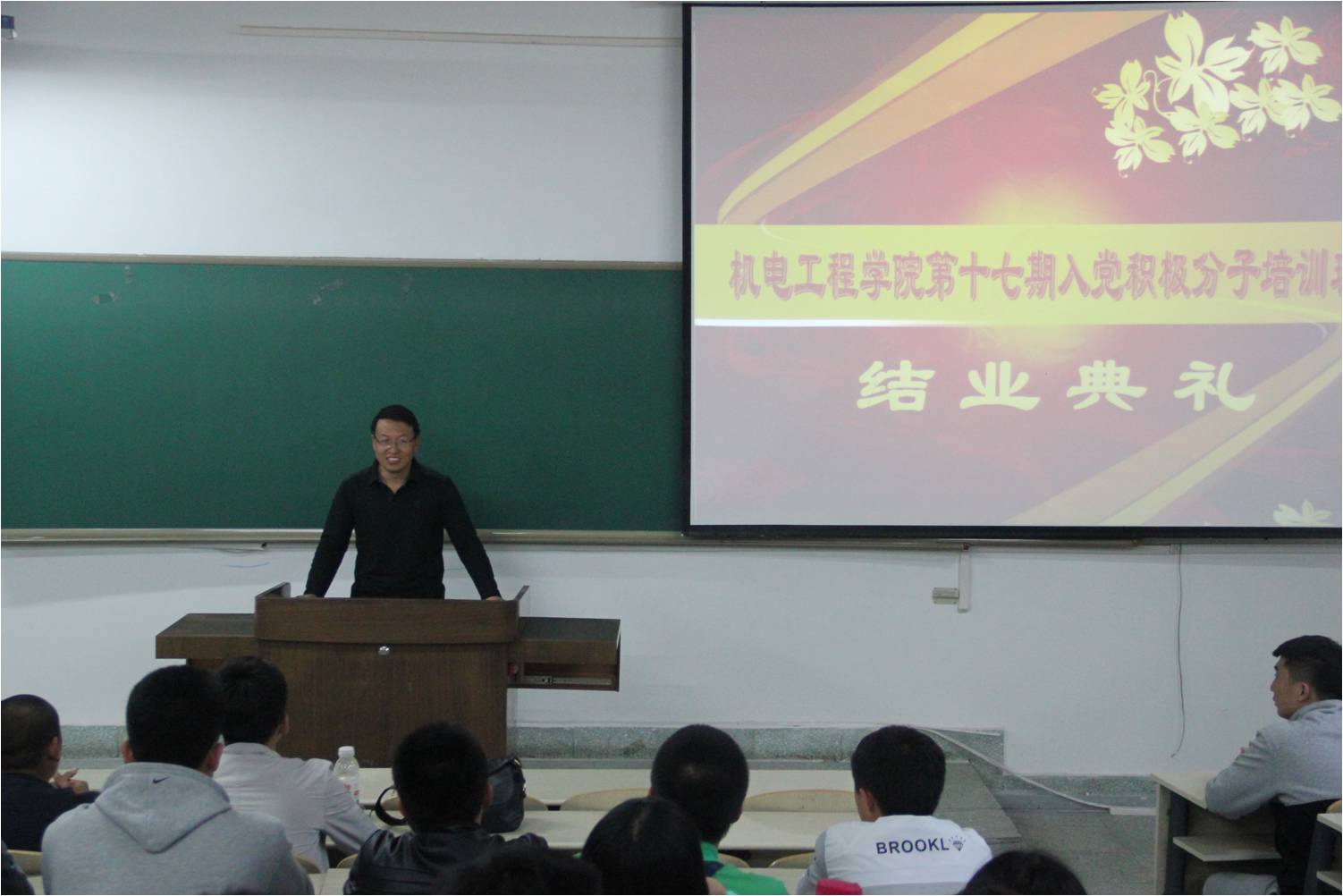 本次培训班115名学员全部通过考核顺利结业,典礼上许老师为11名优秀学员和10名优秀组织者颁发获奖证书。优秀学员代表吴冲以自身的学习体会作了简要发言。最后许老师以共产党员的标准对同学们提出了几点要求。