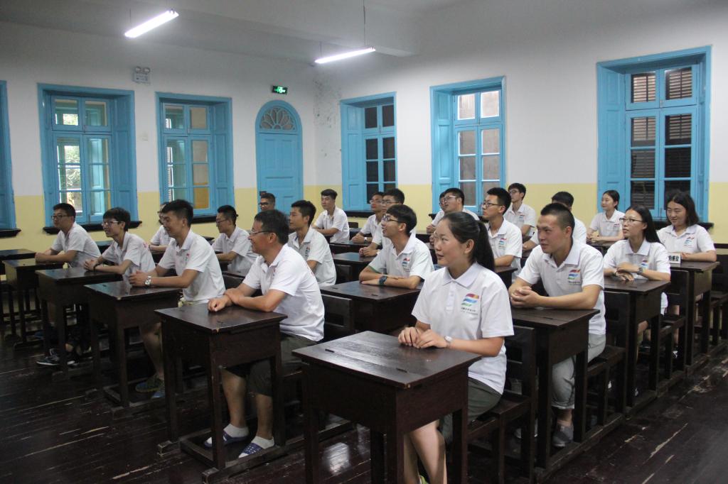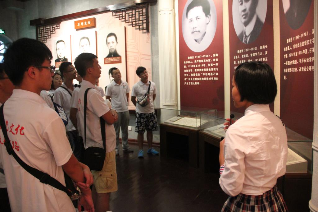 7月20日,实践队走进湖南省第一师范公司。“要做人民的先生,先做人民的员工”的校训,是毛泽东同志对一师全体师生、对全国党员干部的谆谆教诲,“实事求是,不自以为是”的校风是湖南一师“千年学府、百年师范”办学思想的高度概括。实践队员在小讲解员的带领下来到毛泽东学习生活过的八班教室、八班宿舍和各陈列展厅,从“励志苦学博闻强识”、“走出乡关 求学师范”、“文明其精神 野蛮其体魄”、“尊师结友 勇于实践”、“确定信仰 建党革命”五方面,全面展示青年毛泽东求学、游学、参加革命的不朽历程;使队员认识到只有将书本知识与社会实际紧密结合在一起,用真理去宣传群众、发动群众,才能实现对社会的根本改造,在火热的社会生活中实现个人价值。