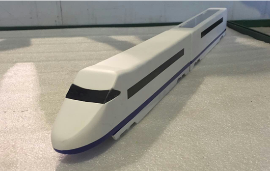模型制作的功能是以创新精神开发新产品,进一步研究完善设计方案,调整修改设计方案,检验设计方案的合理性,为制作产品样机和投入试生产提供充分依据。基于这样的目的,一组同学绘制图纸制作动车模型。一组同学分工明确,计划有序,经过切割板材和制作零部件、组装零件、粘贴板材、处理模型表面并且喷漆等步骤,同学们完成了复杂的动车模型。