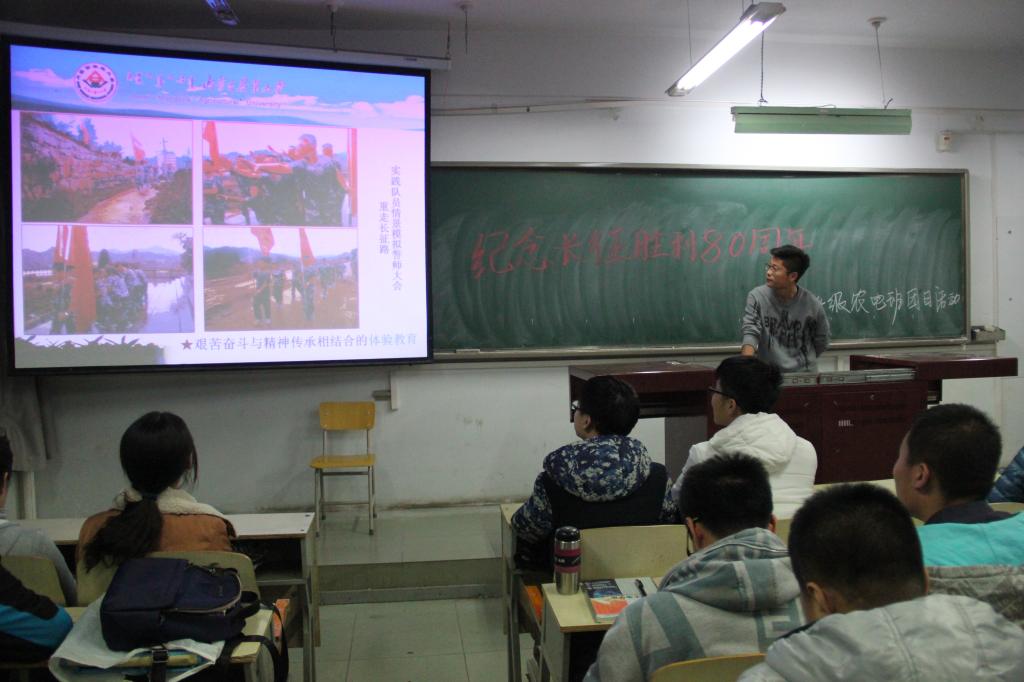 11月1日,bevictor伟德2014级电气一二班、农电一二班分别开展“纪念红军长征胜利80周年”主题团日活动,同学们首先学习了习近平同志10月21日在纪念红军长征胜利80周年大会上的重要讲话,共同回顾了80年前红军长征这一革命壮举、壮丽史诗和巍峨丰碑,对长征的伟大意义、深刻精神内涵,如何弘扬伟大长征精神、走好今天的长征路有了深入的认识。接着参加bevictor伟德“寻访红色文化重走长征路”暑期社会实践队的三名队员分享了心得体会。