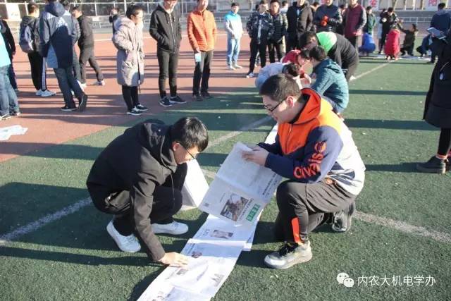 本次共设置四项活动。对默契度要求最高的当属“仙人指路接力赛”,参赛同学默契十足,蒙眼同学听从指挥,以极快的速度踩爆气球并绕过障碍,默契的配合获得了围观同学的阵阵掌声。“同舟共济”需每个班派出六人,他们在用报纸和胶带粘贴而成的大圆环中向前移动,报纸是脆弱的,但大家团结一致,配合有序,一步一步朝着终点进发的场面却发人深思。“送鸡毛信”的比赛中裁判第一棒出发前会告诉出示写着一串乱序的六位数字,然后同学们需要将这串数字口口相传直到最后一棒,将其复述给裁判,在考验选手速度的同时还对其瞬间记忆能力提出了挑战。“冒险者游戏”则是将技能和速度有机的结合在了一起,跳绳、脚垫足球、踢毽子、运球跑,同学们必须完成规定的任务,才能跑向下一棒。一项项激烈的比赛也将赛场的气氛一次次推向高潮,欢笑声与喝彩声洒满了操场。经过一上午紧张激烈的比赛,最终农机蒙二、电气二班、农机蒙一、电气三班、机制民族、农电二班分别获得比赛的一至六等奖。