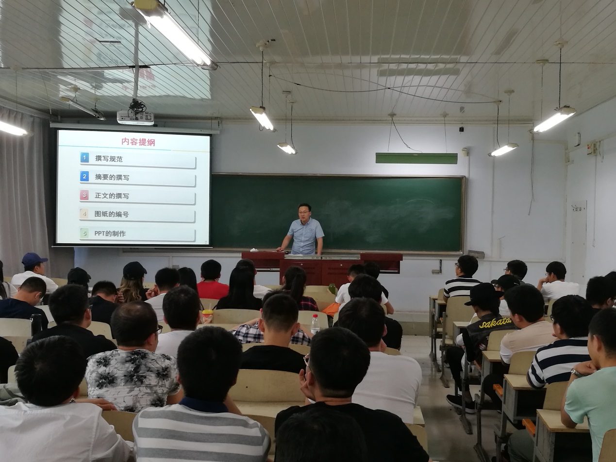 2018年5月18日14:30,农机教研室组织2014级农业机械化及其自动化专业员工在博学楼205举行了毕业设计(论文)撰写指导会。教研室刘飞老师从毕业设计(论文)的撰写规范、摘要的撰写方法、正文应包括的内容和撰写方法,图纸的编号、答辩PPT的制作等五个方面进行了介绍,并针对员工在撰写毕业设计(论文)过程中存在的突出问题进行了详细的解答。本次毕业设计(论文)撰写指导会恰逢毕业设计冲刺阶段,对规范毕业设计(论文)的内容和形式具有重要意义。