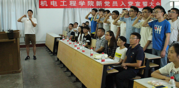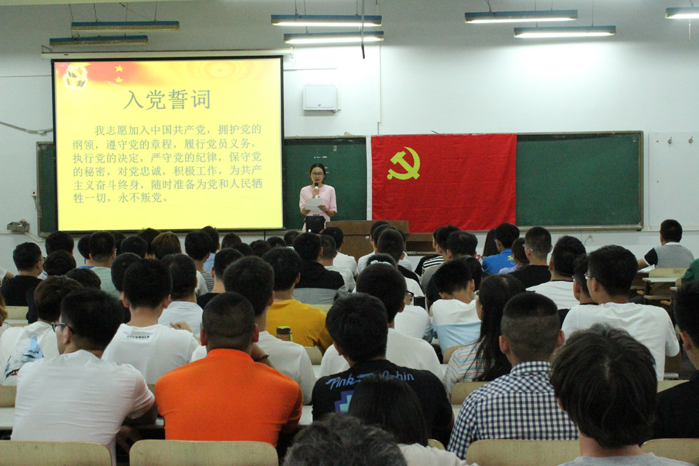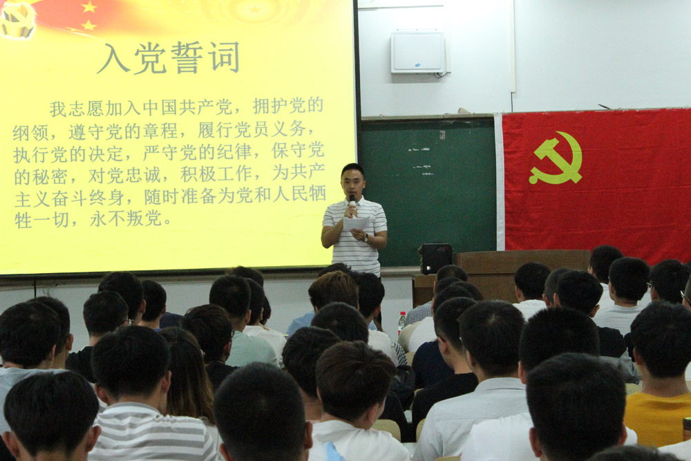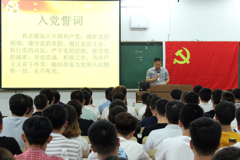 在慷慨激昂的《国际歌》后,葛飞同志宣布新发展党员名单,佟鑫同志领读誓词带领全体预备党员进行庄严宣誓,刘宇琛同志代表新发展的预备党员回顾党的艰辛历程,表明入党决心,将以实际行动践行党员义务,体现党员的先锋模范作用;王浩同志代表老党员发言,欢迎新同志加入党组织,希望新、老党员能够以更高标准严格要求自己,为党组织增光添彩。