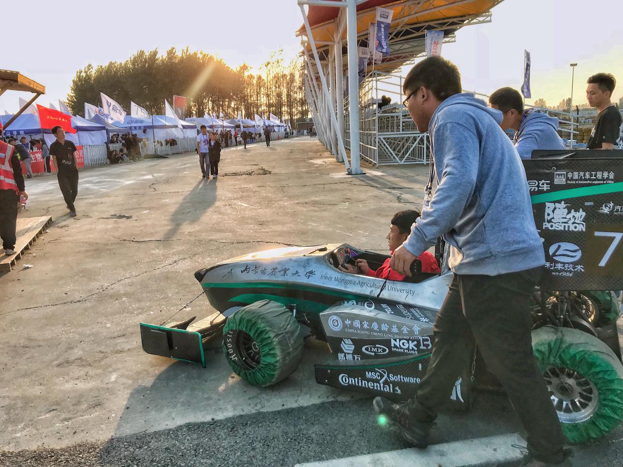 在襄阳期间,那书记看望了赛场上恪尽职守的参赛队员,观看了公司老员工驾驶自主研发的赛车在赛场上驰骋的情况。那书记向指导老师和参赛队员表达了问候,同时鼓励同学们利用好本次参赛机会,提高实践动手能力,培养吃苦耐劳的精神,为将来步入社会、走上工作岗位从事相关工作打下坚实的基础。指导老师佟鑫详细介绍了参赛的内容、过程、赛车的各项运行情况、尚存在的困难及取得的阶段性成果。那书记对此次队员在比赛中的表现给予了充分的肯定,并对同学们的辛苦付出表示慰问;同时特别叮嘱参赛同学,一定要注意比赛过程中的安全问题,时刻防范于未然;要求带队老师对紧急突发状况做好预案,切实将同学们的人身安全放在首位。