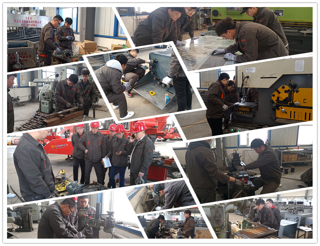 实训期间,员工们了解了公司的发展历史以及目前公司生产的农牧机械的研发设计和生产情况,同时学习了自走式向日葵收获机、马铃薯清洗和干洗机、去皮机、胡萝卜清洗机和抛光机、核桃清洗去皮机和青红椒皮核自动分选成套设备等典型农牧机械的主要结构和工作原理,以及各生产环节的工艺流程和加工手段;此外,员工们以轮岗制,配合焊接下料组、机加工组、装配组和质检组4个岗位的工人师傅,操作铣床、联合冲剪机、折弯机、钻床等机床和工具,亲自动手实践操作,完成钢板下料、划线、工件折弯、裁剪、钻孔、攻丝、加注黄油、组装机器与调试、铣键槽、冲孔、轴承校核、机器及工件检测等生产任务。
