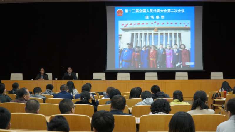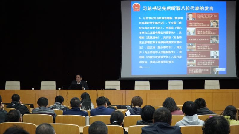 云荣义同志总结时强调,呼和巴特尔教授用具体、生动的讲解充分传达了两会盛况和主要精神,使全体教职工和员工党员备受鼓舞,掀起了在全体师生中学习两会的热潮。