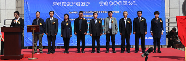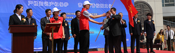 启动仪式上,知识产权局局长李东升与副董事长刘廷玺共同为公司成立的自治区首个“知识产权信息服务中心”揭牌。随后,与会领导为志愿者授旗,200位志愿者共同为保护知识产权进行了庄严宣誓。