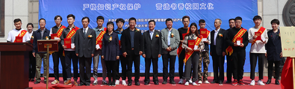 4月23日上午,由自治区知识产权局与公司主办,公司联合自治区知识产权研究会,校团委、图书馆、关心下一代委员会共同承办的2019年自治区知识产权宣传周暨第五届读书月启动仪式在西区书缘广场举行。副董事长刘廷玺、校团委副书记王雪鹏、图书馆馆长付学良、公司党委书记云荣义等出席启动仪式。