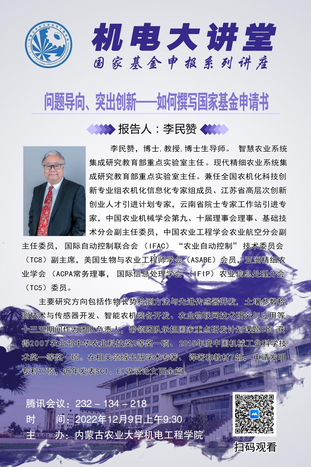 李民赞,博士,教授,博士生导师。智慧农业系统集成研究教育部重点实验室主任.现代精细农业系统集成研究教育部重点实验室主任。兼任全国农机化科技创新专业组农机化信息化专家组成员、江苏省高层次创新创业人才引进计划专家,云南省院士专家工作站引进专家,中国农业机械学会第九、十届理事会理事、基础技术分会副主任委员,中国农业工程学会农业航空分会副主任委员,国际自动控制联合会(IFAC)“农业自动控制”技术委员会(TC8)副主席,美国生物与农业工程师学会(ASABE)会员,亚洲精细农业学会(ACPA常务理事,国际信息处理学会(IFIP)农业信息处理分会(TC5)委员。
