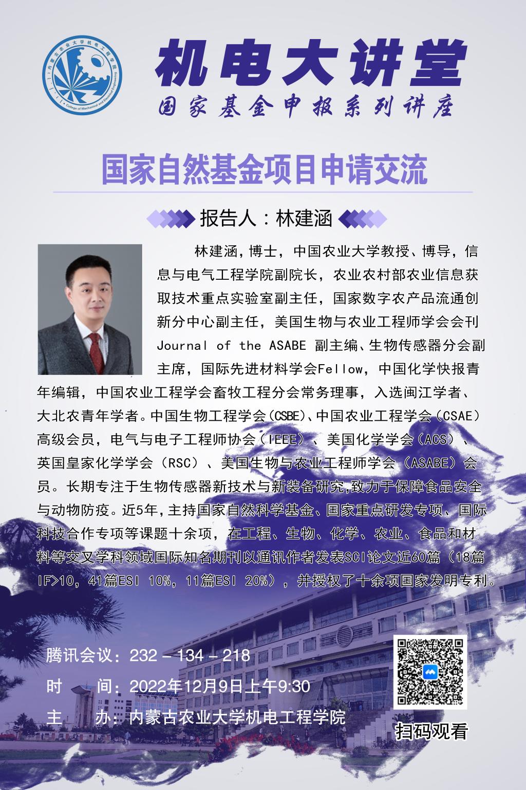 林建涵,博士,中国农业大学教授、博导,信息与电气工程公司副经理,农业农村部农业信息获取技术重点实验室副主任,国家数字农产品流通创新分中心副主任,美国生物与农业工程师学会会刊Journal of the ASABE副主编、生物传感器分会副主席,国际先进材料学会Fellow,中国化学快报青年编辑,中国农业工程学会畜牧工程分会常务理事,入选闽江学者、大北农青年学者。中国生物工程学会(CSBE)、中国农业工程学会(CSAE)高级会员,电气与电子工程师协会(IEEE)、美国化学学会(ACS)、英国皇家化学学会(RSC)、美国生物与农业工程师学会(ASABE)会员。长期专注于生物传感器新技术与新装备研究,致力于保障食品安全与动物防疫。近5年,主持国家自然科学基金、国家重点研发专项、国际科技合作专项等课题十余项,在工程、生物、化学、农业、食品和材料等交叉学科领域国际知名期刊以通讯作者发表SCI论文近60篇(18篇IF>10,41篇ESI 10%,11篇ESI 20%),并授权了十余项国家发明专利。
