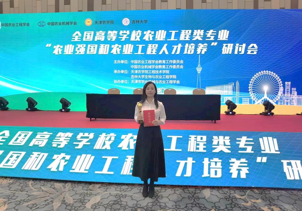 2023年10月14日,由中国农业工程学会、中国农业机械学会联合举办的“第三届全国农业工程类专业青年教师讲课竞赛”在天津市圆满落幕。经过激烈角逐,公司教师乌兰图雅荣获特等奖,刘海洋荣获一等奖。