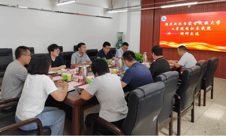 6月19日下午,内蒙古民族大学工公司党委书记曹佈仁特古斯、副经理张春友等4人来公司调研交流,与公司领导班子成员和教师代表开展交流。