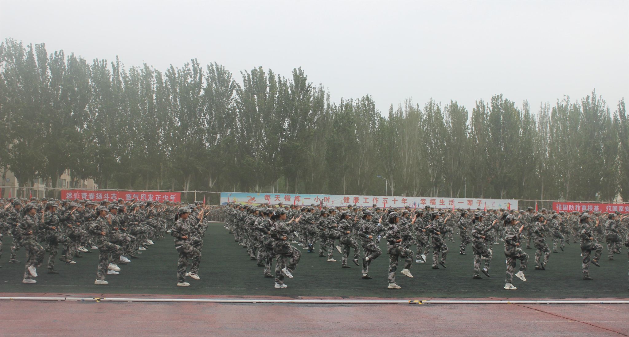 总结大会上,国旗护卫队步伐铿锵,庄严的国歌声起,五星红旗迎风飘扬,军训汇报表演也拉开了序幕。分列式上,各连队昂首挺胸,目光炯炯,迈着整齐划一又矫健有力的步伐经过主席台。他们声音洪亮,眼神坚定,展现出蓬勃的朝气与良好的精神面貌。刺杀操出枪刚劲,彰显着力量与勇敢;匕首操巾帼不让须眉,英姿飒爽。军体拳表演,动作整齐划一,拳风呼啸,气势如虹。
