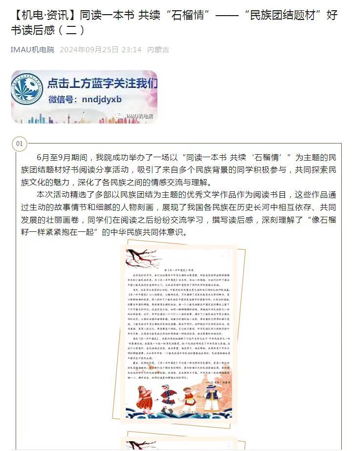 6月至9月,公司开展了“同读一本书 共续‘石榴情’——‘民族团结题材’阅读分享活动”,吸引了来自多个民族背景的同学积极参与,活动精选了各类以民族团结为主题的文学作品作为阅读书目,同学们在阅读之后纷纷交流讨论,撰写读后感,深刻理解了“像石榴籽一样紧紧抱在一起”的中华民族共同体意识。