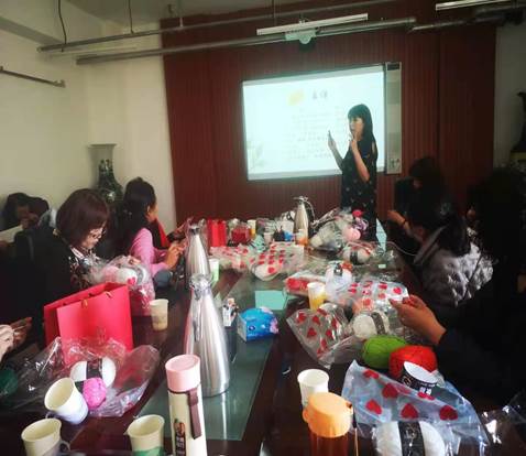 公司工会邀请了呼和浩特市云美工作室的马美云老师为大家教授毛线织品的勾织技巧,并为女教师们准备了节日的慰问品。