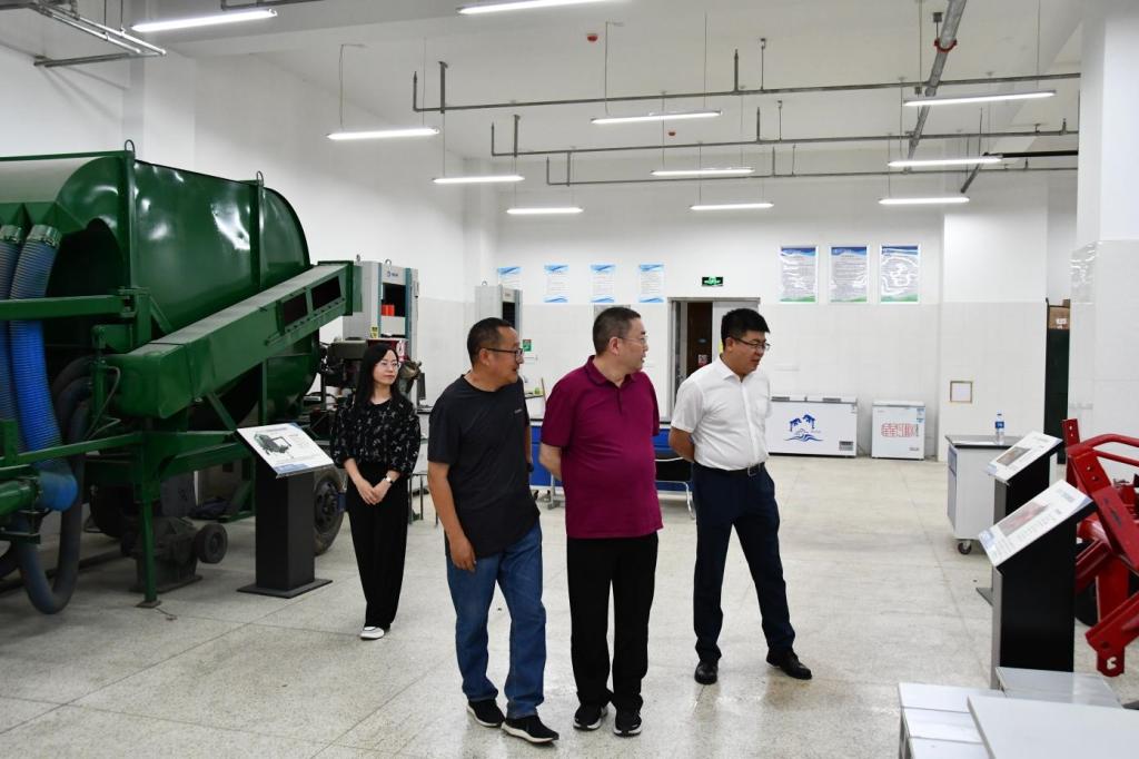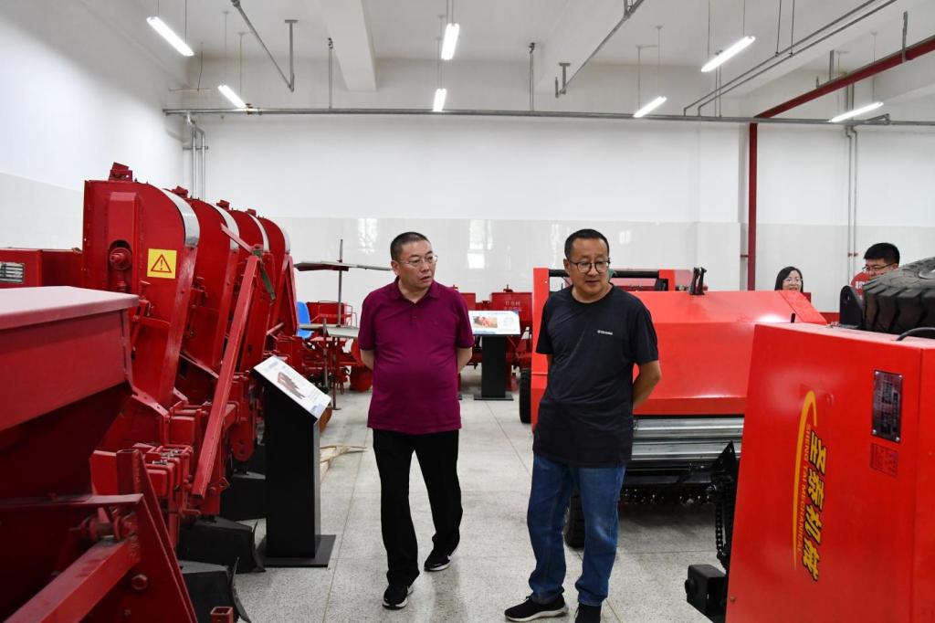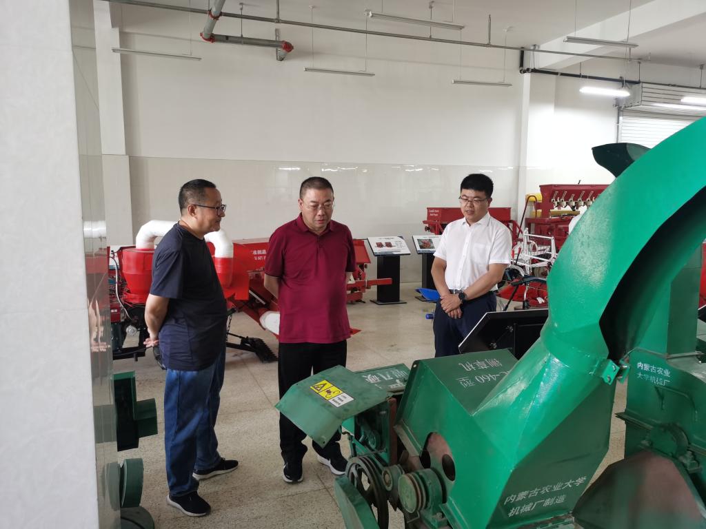 公司机械厂厂长余大庆、农机教研室乌兰图雅老师陪同员工参观了农机教研实验室。