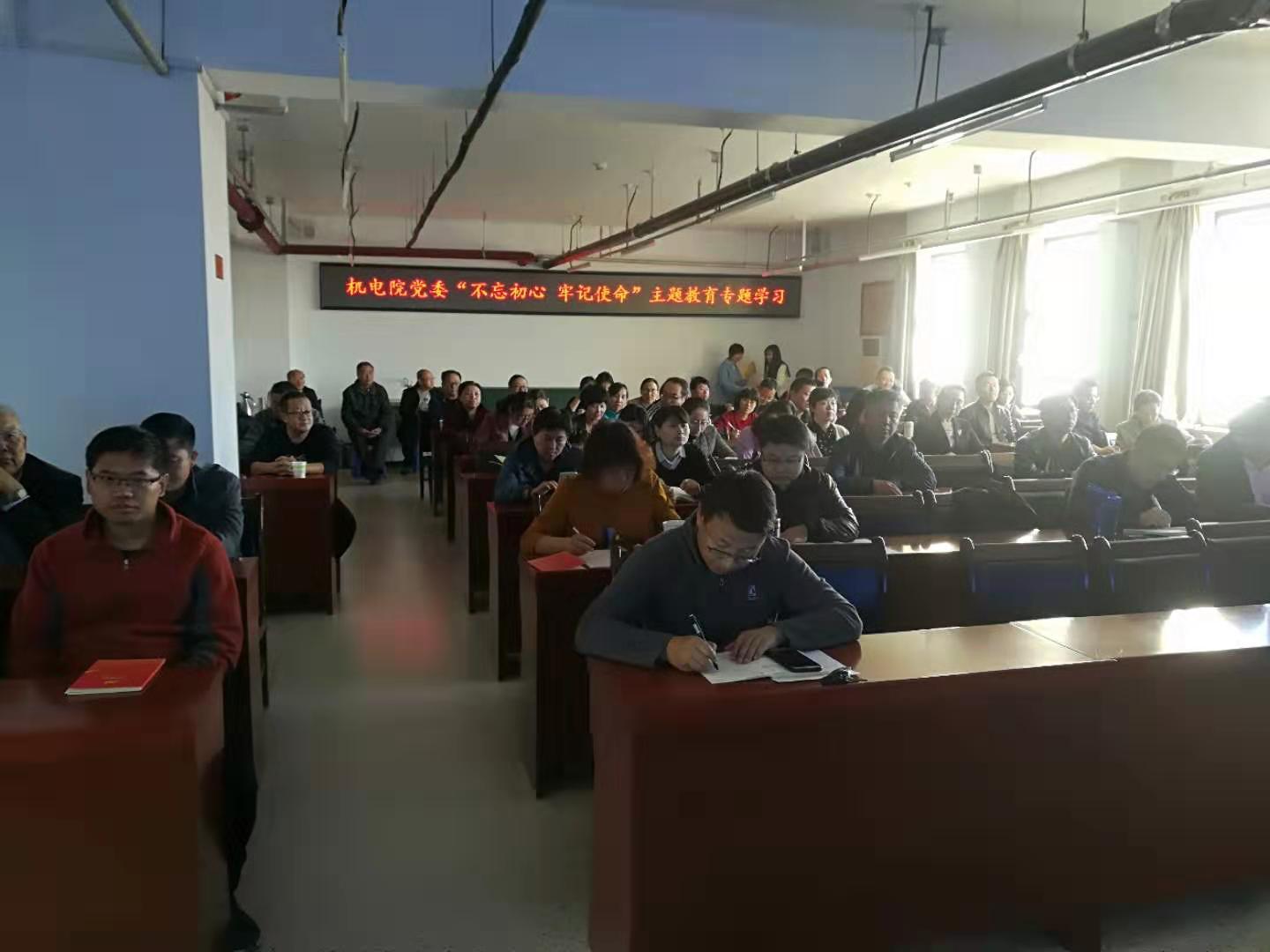 公司党委于2019年11月7日下午14:30组织全院教职工在工科楼825室,召开“不忘初心 牢记使命”主题教育专题学习会,全体教工观看了党风廉政建设警示教育片《初心的蜕化》。